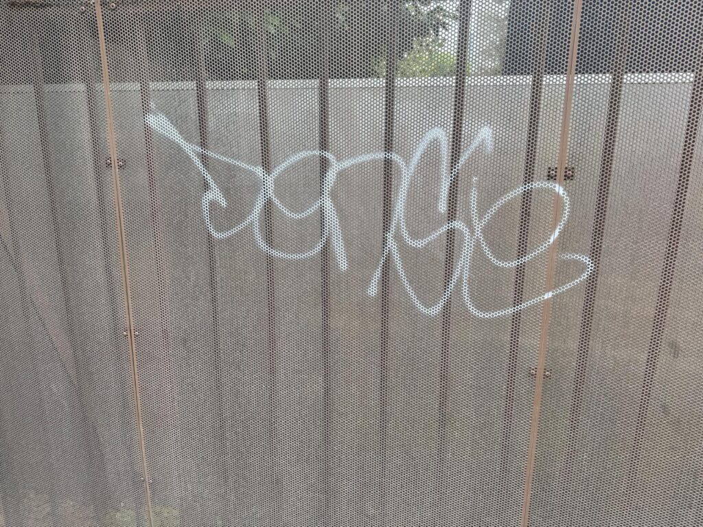 The challenge here was twofold: the graffiti paint was deeply embedded in the mesh structure, and the underlying fence was already coated with a sensitive paint layer.