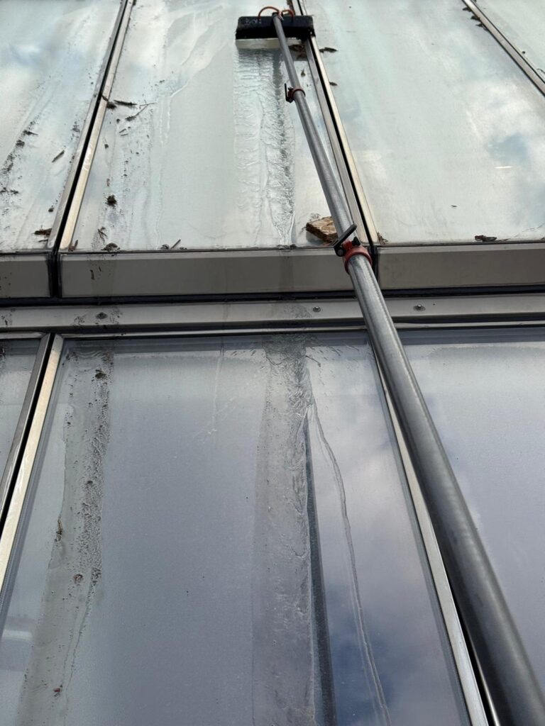 Working on behalf of the specialists at CWG ROOFING LTD, our team was tasked with restoring the clarity of a complex glazed roof system at a prominent school. The project required a meticulous approach to ensure the structural integrity of the roofing was respected while achieving a streak-free finish.
